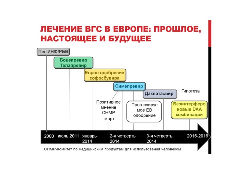 Мишени для препаратов прямого противовирусного действия ...превир ...бувир ...асвир NS3/4A Симепревир (Janssen) Асунапревир (BMS) Боцепревир (MSD) Паритапревир (Abbvie) NS5B Дасабувир (Abbvie) Софосбувир (Gilead) NS5A Даклатасвир (BMS) Омбитасвир (Abbvie) Ледипасвир (Gilead) PR