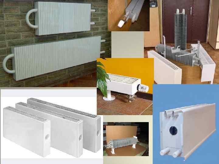 конвекторы • Без кожуха (регулировка теплоотдачи по воде) • С кожухом : - регулировка теплоотдачи по воде; - регулировка теплоотдачи по воздуху.
