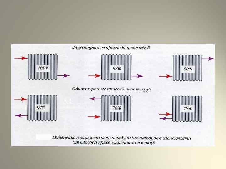 Схемы движения воды через нагревательный прибор: а) сверху – вниз; б) снизу – вверх; в) снизу - вниз