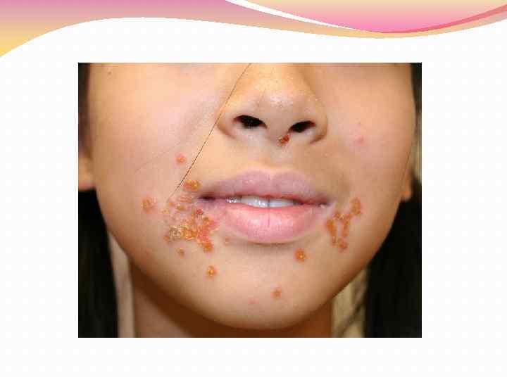 Стрептококковое импетиго - контагиозное заболевание, поражающее детей и молодых женщин. Характеризуется высыпанием фликтен, окаймленных ободком гиперемии. Нередко покрышка фликтен разрывается с образованием поверхностных эрозий розово красного цвета, отделяющих обильный экссудат. Экссудат, как и содержимое фликтен, быстро подсыхает с образованием медово желтых корок, по отпадении которых обнаруживаются розовые пятна, вскоре исчезающие. При прогрессировании фликтены становятся множественными, могут сливаться в обширные очаги, покрытые массивными корками. Отмечается умеренный зуд или легкое жжение. Общее состояние обычно не нарушается.