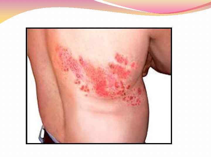 Опоясывающий лишай (опоясывающий герпес) Опоясывающий лишай вызывается вирусом, сходным с вирусом ветряной оспы. Инфекция наблюдается чаще у взрослых, чем у детей. Дети, заражаясь при контакте с больными взрослыми, заболевают ветряной оспой. Заболевание начинается с повышения температуры и сильных болей в местах локализации высыпаний: как правило, на лице, грудной клетке, пояснице. На поверхности кожи появляются группы пузырьков, наполненных серозным или геморрагическим, иногда гнойным содержимым. Если человек перенес опоясывающий лишай, у него на всю жизнь выработан иммунитет, который обеспечивает невосприимчивость организма к этому заболеванию.