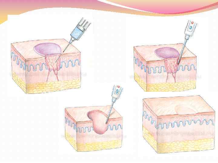 Основные методы удаления бородавок Наиболее часто применяются два метода удаления бородавок – это криотерапия и удаление с помощью радиоволнового скальпеля. Если проводится криотерапия, то бородавки, возникшие на коже пациента, обрабатываются жидким азотом – веществом, которое позволяет охлаждать объекты до очень низких температур. А именно, до 187 градусов. После такой сильной заморозки бородавки, на ее месте через некоторое время образуется характерный пузырь. Вскоре он вскрывается, на его месте образуется рана, которая заживает в течение 2 3 недель, затем на этом месте образуется рубец. Данный метод удаления бородавок почти безболезнен (есть только несильные неприятные ощущения). Недостаток этого метода сложно контролировать глубину удаления, и поэтому оставшийся рубец может достаточно большим или бородавка может быть не до конца удалена.