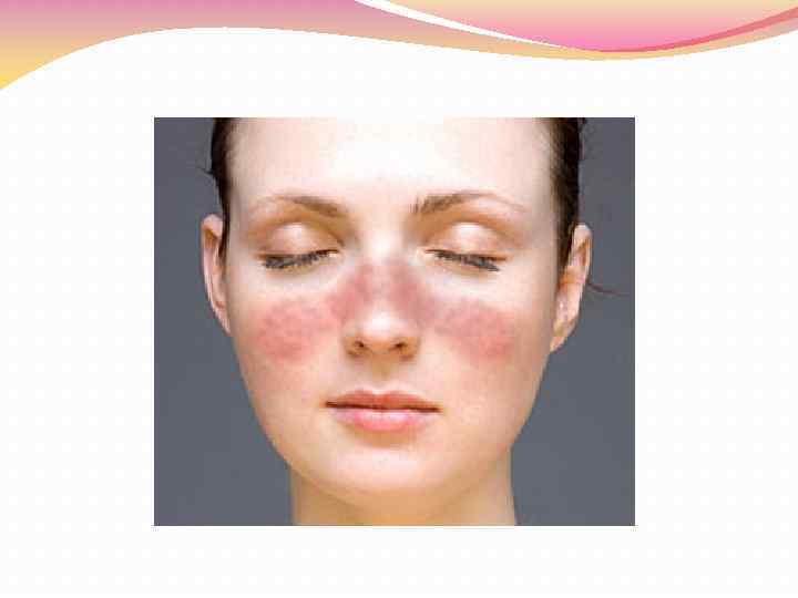 Симптомы Больные обычно жалуются на необоснованные подъёмы температуры, слабость, головные боли, боли в мышцах, быструю утомляемость. Разумеется, эти симптомы не патогномоничны, но сочетание с другими, более специфическими, увеличивает вероятность того, что больной страдает СКВ. Дерматологические проявления Кожные проявления имеются у 65 % больных СКВ, возникают одними из первых, однако только у 30— 50 % отмечается «классическая» макулопапулезная сыпь на щеках в форме бабочки, а также на руках и туловище У многих пациентов обнаруживается дискоидная волчанка — толстые красные чешуйчатые пятна на коже. Гнёздная алопеция и ульцерация полости рта и носа, влагалища — также в числе возможных проявлений СКВ. Иногда появляются трофические язвы, а также ломкость ногтей и выпадение волос.