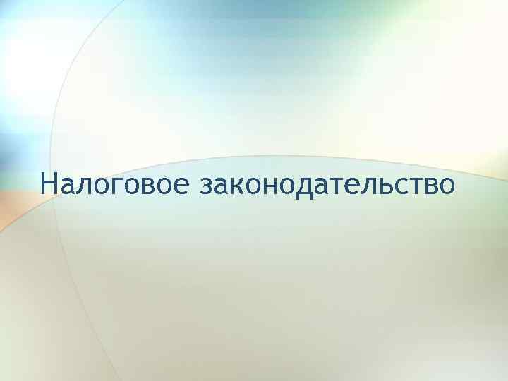 Налоговое законодательство