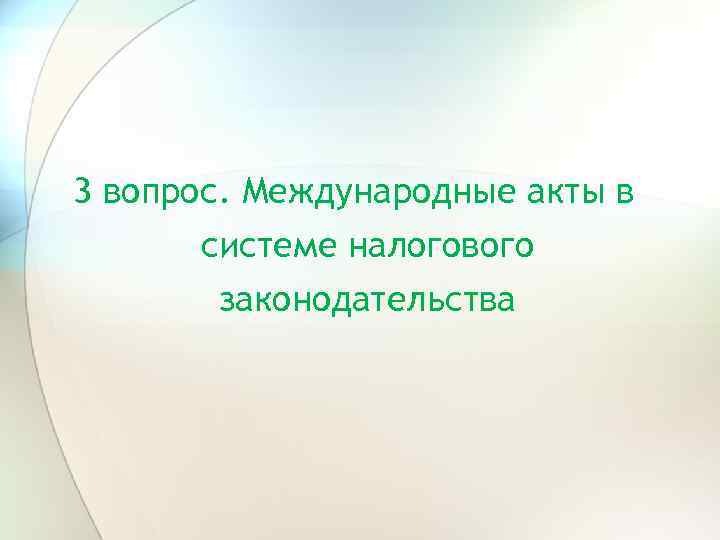 Налоговое законодательство • 1 вопрос. Общие положения о налоговом законодательстве • 2 вопрос. Действие налогового законодательства • 3 вопрос. Международные акты в системе налогового законодательства