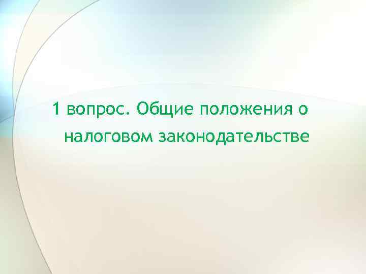 1 вопрос. Общие положения о налоговом законодательстве