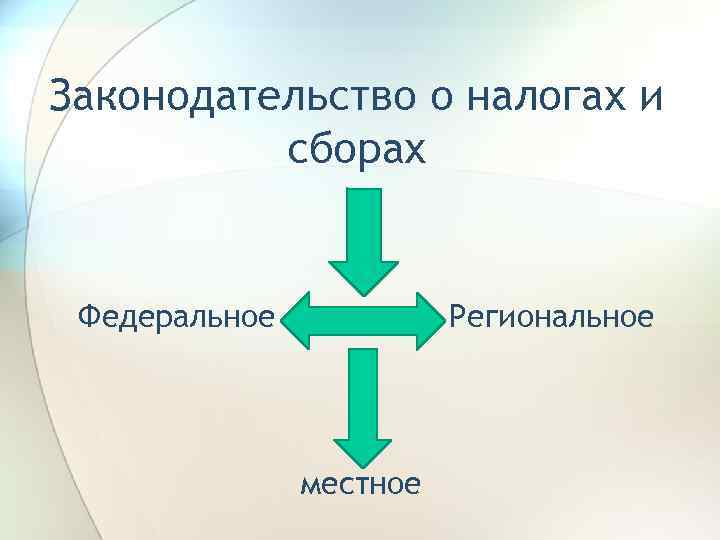 Законодательство о налогах и сборах Федеральное Региональное местное