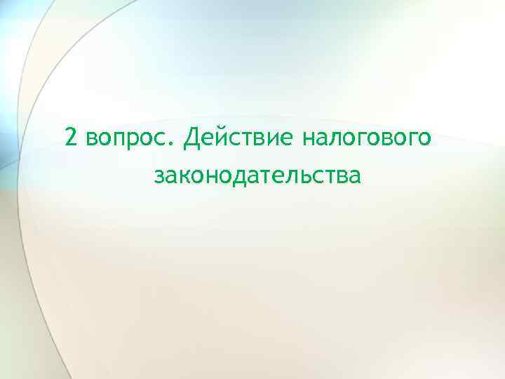 2 вопрос. Действие налогового законодательства