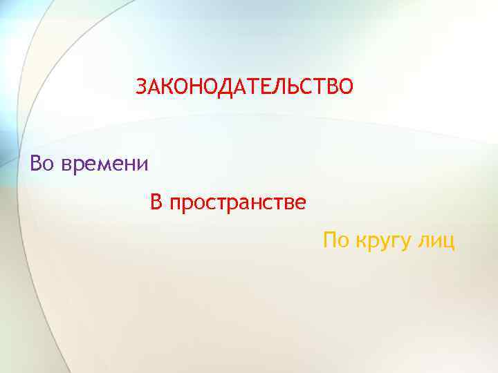 ЗАКОНОДАТЕЛЬСТВО Во времени В пространстве По кругу лиц