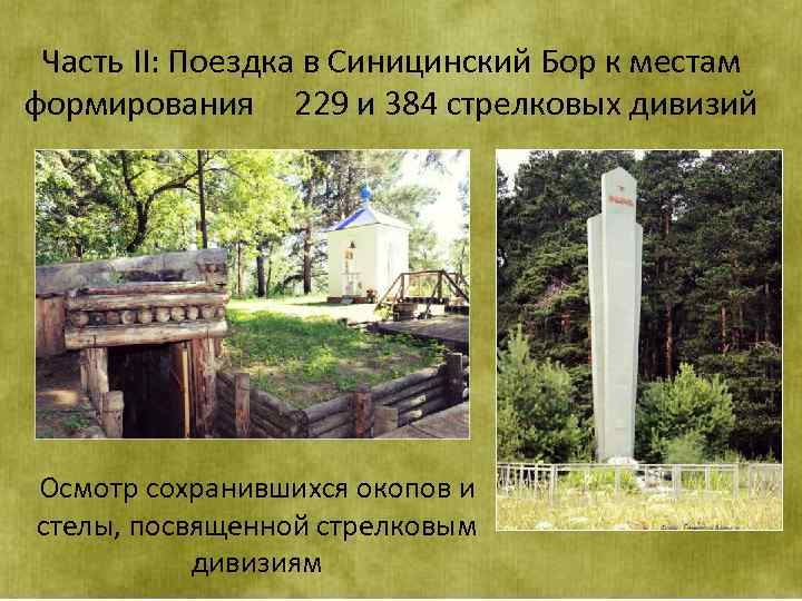 Часть II: Поездка в Синицинский Бор к местам формирования 229 и 384 стрелковых дивизий Осмотр сохранившихся окопов и стелы, посвященной стрелковым дивизиям