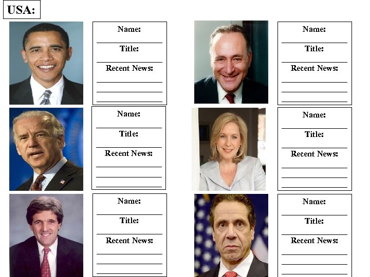 USA: Name: ________________ Title: ________________ Recent News: ________________ ________________ ________________ Name: ________________ Title: ________________ Recent News: ________________ ________________