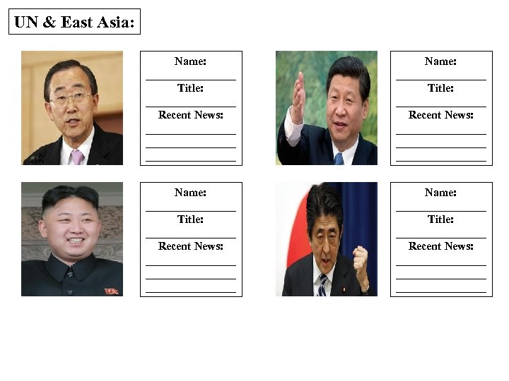 UN & East Asia: Name: ________________ Title: ________________ Recent News: ________________ ________________ ________________