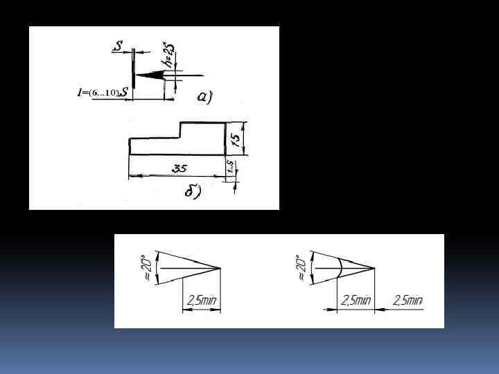 Если длина размерной линии недостаточна для размещения на ней стрелок, то размерную линию и стрелки наносят, как показано на рисунке При недостатке места для стрелок, если размеры расположены цепочкой, стрелки допускается заменять точками или засечками под углом 45° к размерным линиям