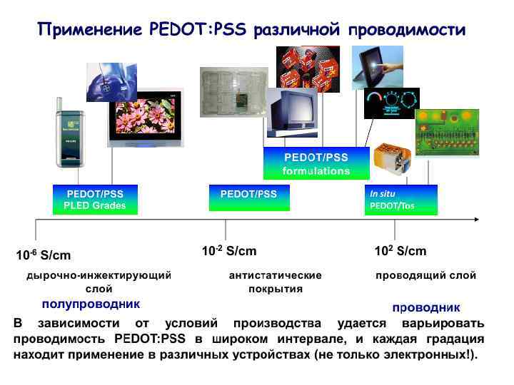 Проводимость сопряженных полимеров по сравнению с другими материалами и полупроводниками