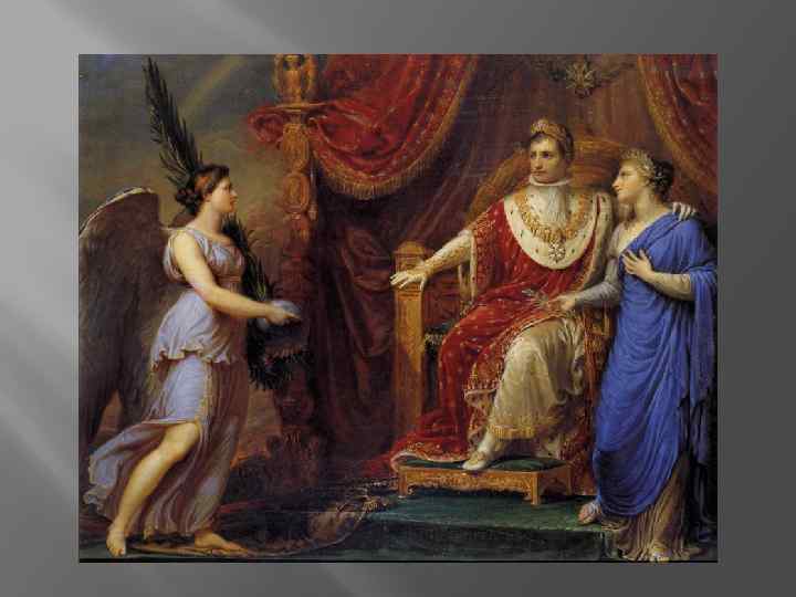 Приход к власти Кризис власти в Париже достиг своего апогея к 1799 году, когда Бонапарт находился с войсками в Египте. Коррумпированная Директория была неспособна обеспечить завоевания революции. В Италии русско-австрийские войска под командованием генерал-фельдмаршала А. В. Суворова ликвидировали все приобретения Наполеона, и даже возникла угроза их вторжения во Францию. В этих условиях возвратившийся из Египта популярный генерал, с помощью Жозефа Фуше, опираясь на верную ему армию, разогнал представительные органы и Директорию и провозгласил режим консульства (9 ноября 1799). Согласно новой конституции, законодательная власть делилась между Государственным Советом, Трибунатом, Законодательным корпусом и Сенатом, что делало её беспомощной и неповоротливой. Исполнительная власть, напротив, собиралась в один кулак первого консула, то есть Бонапарта. Второй и третий консулы имели лишь совещательные голоса. Конституция была одобрена народом на плебисците (около 3 миллионов голосов против 1, 5 тысяч). Позже Наполеон провёл через сенат декрет о пожизненности своих полномочий (1802), а затем провозгласил себя императором французов. В момент прихода Наполеона к власти Франция находилась в состоянии войны с Австрией и Англией. Новый итальянский поход Бонапарта напоминал первый. Перейдя через Альпы, французская армия неожиданно появилась в Северной Италии, восторженно встречаемая местным населением. Решающей стала победа в битве при Маренго. Угроза французским границам была ликвидирована.