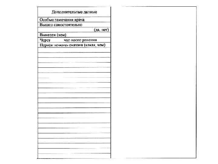 Предельные сроки оказания медицинской помощи Вид медицинской помощи Первая медицинская Доврачебная Первая врачебная Квалифицированная Специализированная Объем медицинской помощи Полный Нуждаемость, % числа пострадавших 100 Предельные сроки оказания, ч Немедленно Полный По неотложным показаниям Отсроченная первой очереди Отсроченная второй очереди Полный 80— 100 15— 20 2 6 3 65— 80 70— 75 10 6 48 12 30— 40 24 20— 25 48 25— 30 72