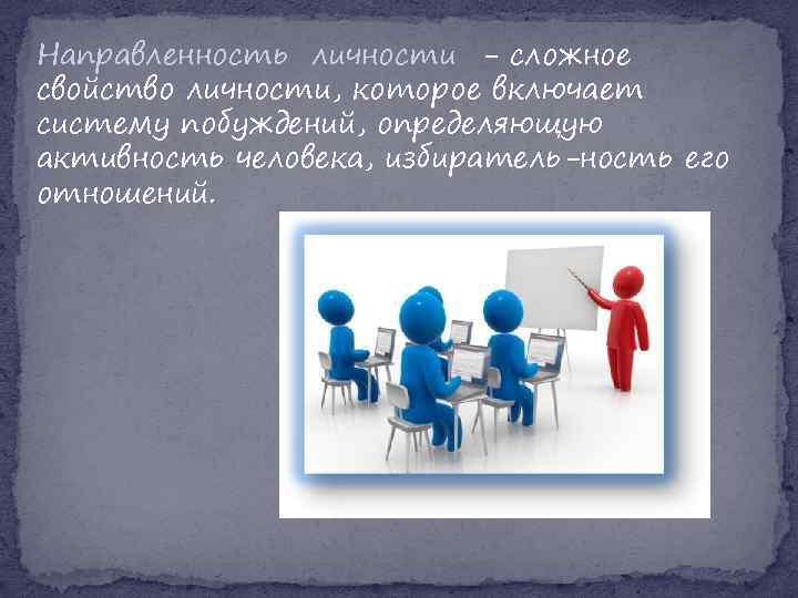 Направленность личности - сложное свойство личности, которое включает систему побуждений, определяющую активность человека, избиратель ность его отношений.