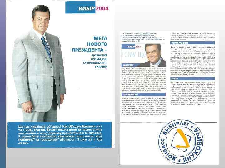 Президентські вибори 2004 року У 2004 р. Прем'єр-міністр України Віктор Янукович за підтримки президента Леоніда Кучми став «кандидатом від влади» на президентських виборах в Україні. У першому турі Віктор Янукович набрав (39, 26%) голосів, посівши 2 -е місце серед 24 претендентів. У другому турі, Віктор Янукович здобув перемогу (одержавши 49, 46% голосів). Згідно з рішенням ВСУ 26 грудня 2004 р. відбулося переголосування другого туру, у якому Віктор Янукович програв, набравши 44, 2%.