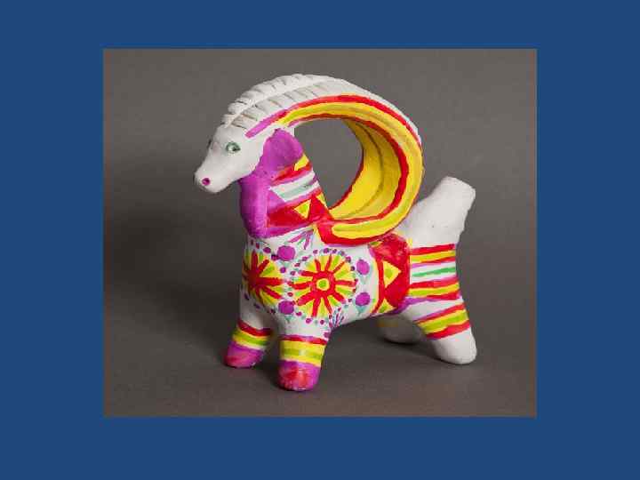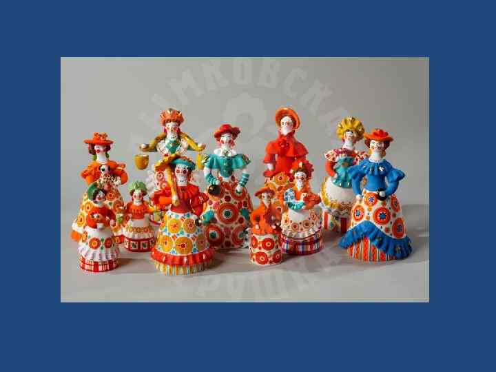 Дымковская игрушка • Много веков назад на берегу реки Вятка образовался город, в котором организовалось поселение слобода. Каждое утро местные топили печи, и из-за постоянно поднимающего дыма поселение так и прозвали - Дымковская слобода.