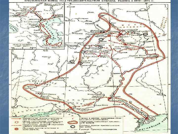 «Поход за зипунами» (1667 -1669) n Отряд Разина блокировал Волгу и тем самым перекрыл важнейшую хозяйственную артерию России. В этот период войска Разина захватывали русские и персидские купеческие корабли. Получив добычу и захватив Яицкий городок, летом 1669 года Разин двинулся к Кагальницкому городку, где стал собирать свои войска. Когда собралось достаточно людей, Разин заявил о походе на Москву.