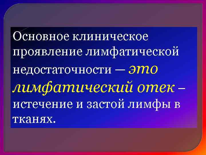 Основное клиническое проявление лимфатической недостаточности — это лимфатический отек – истечение и застой лимфы в тканях.