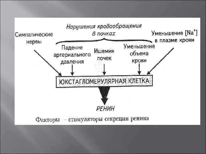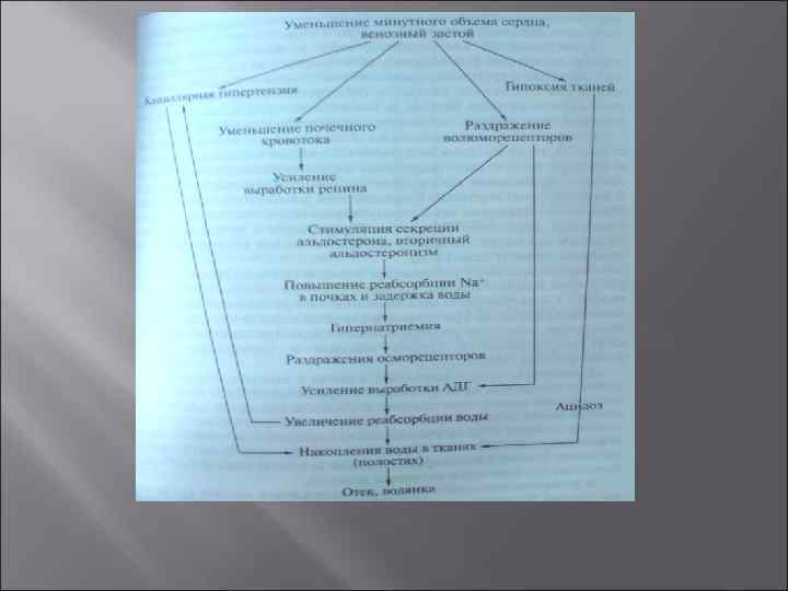 Печёночные отёки Печёночная недостаточность Повышенная продукция ангиотензиногена Цирроз Расширение артериовенозного шунтирования Застой крови в системе воротной вены Снижение печёночного биосинтеза альбумина Гипопротеинэмия Снижается активный артериальный объем Способствует развитию основного звена патогенеза системных отёков Вторичного гиперальдостеронизма Снижение активации альдостерона больной печенью Снижение онкотического давления плазмы