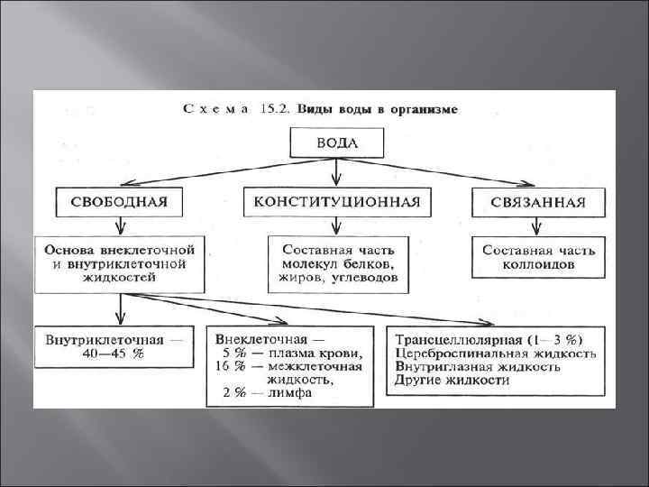 I. III. Обмен воды между организмом и внешней средой Обмен воды между плазмой крови и интерстицием (через стенку капиллярных сосудов) Обмен воды между интерстицием и мембраной клетки
