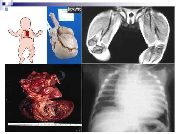 § § § § § Аутосомно-рецессивный тип наследования 1: 40 -300 тыс. Всего в мире 10 000 тыс. больных Симптомы проявляются с первых дней жизни- 6 месяцев Дефект фермента найден в печени, почках, селезенке, мышцах, нервной ткани, лейкоцитах Клиника: расстройство дыхания, беспокойство или адинамия, отсутствие аппетита, задержка роста, мышечная гипотония Объективно: увеличение размеров ♥, печени, почек, селезенки, ♥ шаровидной формы, в связи с гипертрофией миокарда, изменения ЭКГ Часто возникают гипостатические пневмонии, бронхиты, ателектазы легких, миодистрофия, гипорефлексия, спастические параличи Мышечная форма гликогеноза II типа возникает только в мышцах при дефиците кислой α-1, 4 -глюкозидазы, болезнь проявляется в более поздние сроки и по клинической картине напоминает миопатию