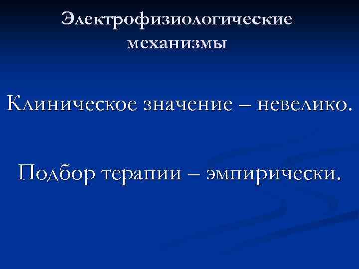 Электрофизиологические механизмы Клиническое значение – невелико. Подбор терапии – эмпирически.