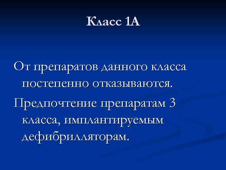 Класс 1 А От препаратов данного класса постепенно отказываются. Предпочтение препаратам 3 класса, имплантируемым дефибрилляторам.
