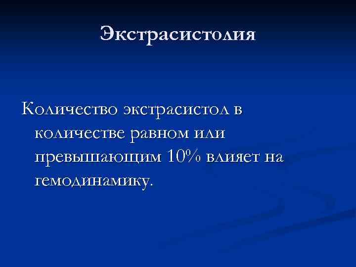 Экстрасистолия Количество экстрасистол в количестве равном или превышающим 10% влияет на гемодинамику.