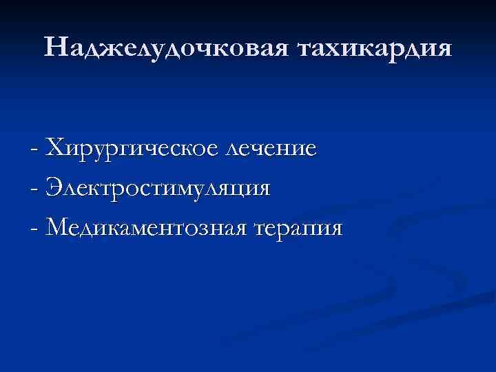 Наджелудочковая тахикардия - Хирургическое лечение - Электростимуляция - Медикаментозная терапия