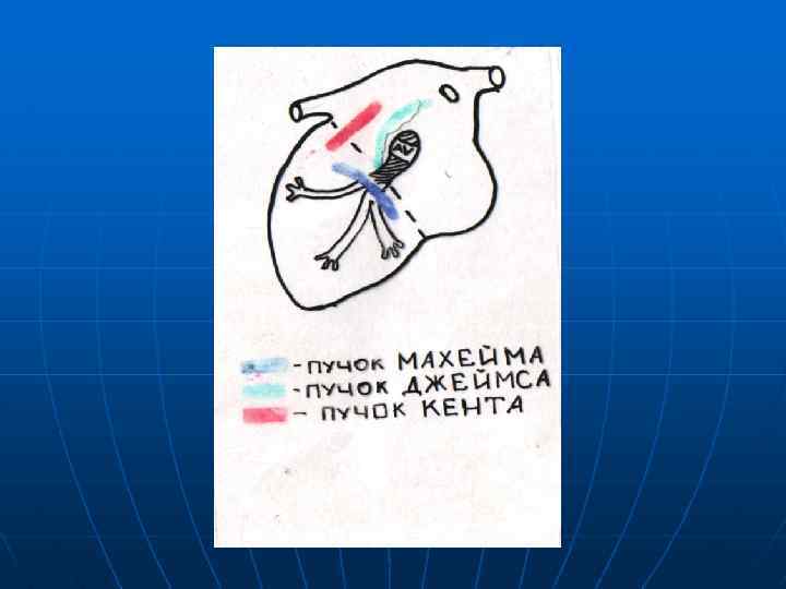 Проводящая система сердца. а б в 7 1. Синусовый узел. 2. Межузловые пути: а. передний путь Бахмана; б. средний путь Венкебаха; в. Задний путь Тореля. 3. Атриовентрикулярный узел Ашоффа-Тавара. 4. Пучок Гиса. 5. Левая ножка пучка Гиса. 6. Правая ножка пучка Гиса. 7. Сеть волокон Пуркинье.