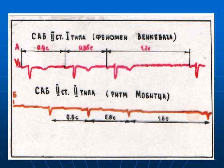 Атриовентрикулярная блокада (АВБ) Неполная АВБ I степени Полная АВБ (III ст. ) II степени I тип с перио. II тип дами Самой. Мобица лова-Венкебаха Высокостепенная АВБ