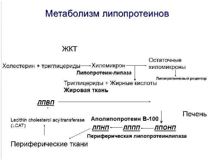 Атерогенез: интегрированный патогенез Факторы риска: генетический фон, высокий холестерин, гипертензия, курение, диабет, гиподинамия, инфекция Herpes virus, Chlamidia и т. д. Фагоцитоз окисленных ЛПНП макрофагами; образование пенистых клеток; продукция цитокинов активированными мононуклеарами Некроз пенистых клеток; пролиферация гладкомышечных клеток; образование липидного ядра и покрышки Повышение ЛПНП/снижение ЛПВП + дисфункция эндотелия (↑ проницаемости, экспрессия адгезионных молекул) Накопление моноцитов и Tлимфоцитов в артериальной стенке; накопление окисленных ЛПНП Истончение покрышки; дестабилизация бляшки и разрыв; наступление тромбоза и ишемические осложнения (инфаркт, инсульт)