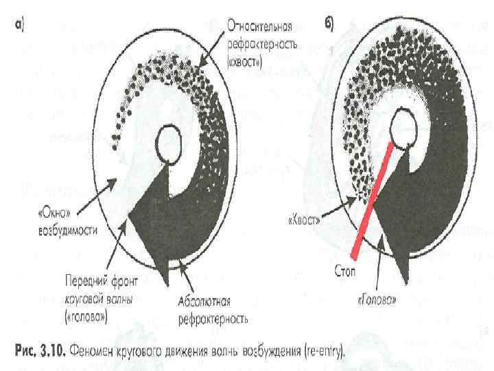 Для возникновения механизма повторного входа (гееntrу) необходимы три условия • анатомическое или функциональное расщепление пути проведения электрического импульса и наличие замкнутого контура (петли проведения); • однонаправленная блокада на одном из участков петли; • замедленное распространение возбуждения на другом участке петли.