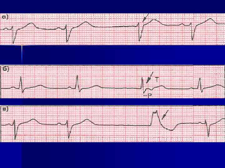 Желудочковая экстрасистолия Преждевременное возбуждение сердца, возникающее под влиянием импульсов, исходящих из различных участков проводящей системы желудочков.
