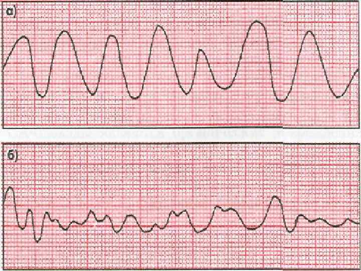 Трепетание желудочков это частое (до 200 -300 в мин) и ритмичное их возбуждение и сокращение. Фибрилляция (мерцание) желудочковбеспорядочное, нерегулярное возбуждение и сокращение отдельных мышечных волокон, ведущее к прекращению систолы желудочков (асистолии желудочков) до 200 -500 в мин