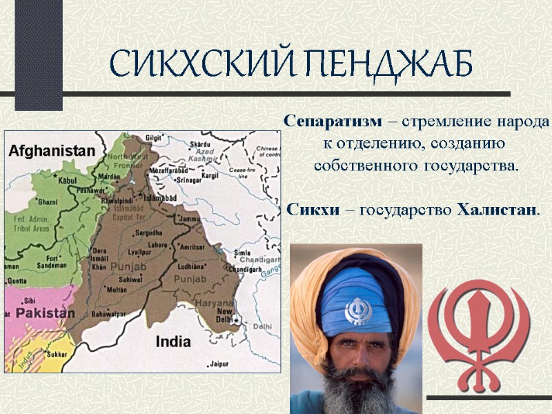 СИКХСКИЙ ПЕНДЖАБ Сепаратизм – стремление народа к отделению, созданию собственного государства. Сикхи – государство Халистан.