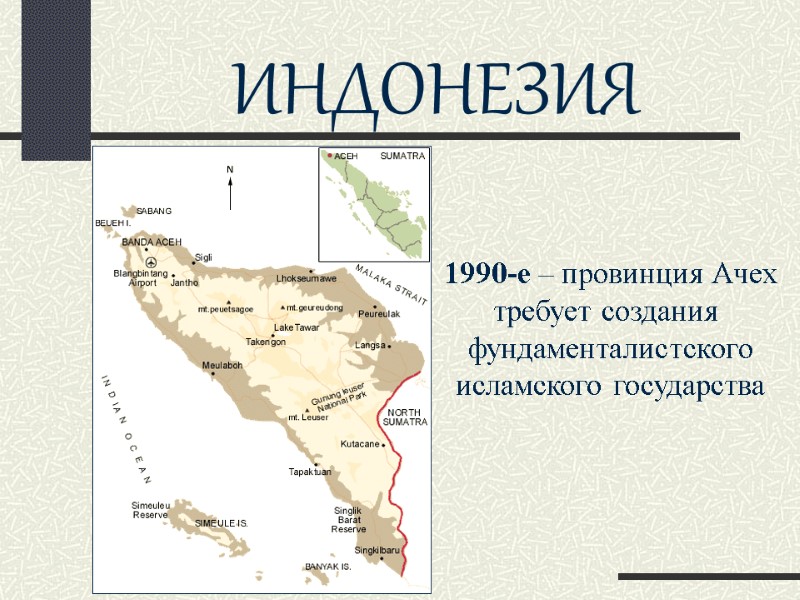 ИНДОНЕЗИЯ 1990-е – провинция Ачех требует создания фундаменталистского исламского государства