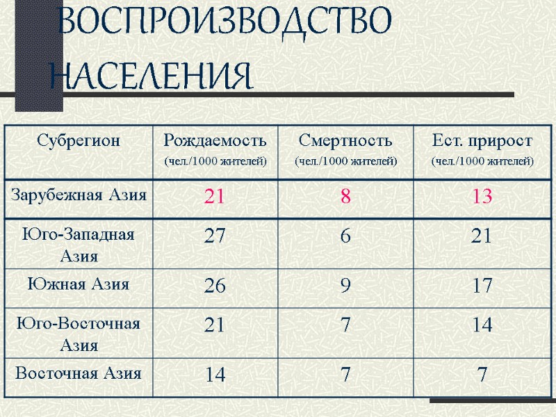 ВОСПРОИЗВОДСТВО НАСЕЛЕНИЯ
