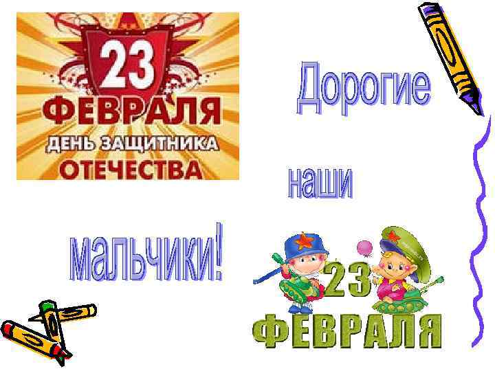 • Вас сегодня поздравляем С Днем защитников страны, От души мы вам желаем Силы духа, пацаны! И еще пускай крепчает Сила в теле молодом, Чтобы нас вы защищали И сегодня, и потом =)