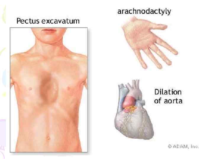 Синдром Морфана или болезнь «паучьих пальцев» . Доминантная мутация одного гена имеет сильный плейотропный эффект. Помимо усиленного роста конечностей (пальцев), у больных наблюдается астения, порок сердца, вывих хрусталика глаза и другие аномалии. Болезнь протекает на фоне повышенного интеллекта, в связи с чем ее называют «болезнью великих людей» .