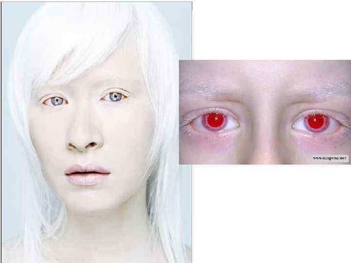 Альбинизм (от лат. albus — белый), отсутствие нормальной пигментации: у людей — кожи, волос, радужной оболочки глаза. Альбинизм — наследственный признак, зависящий от наличия рецессивного, т. е. подавляемого, гена, блокирующего в гомозиготном состоянии синтез меланина. Частота проявления 1: 20 000