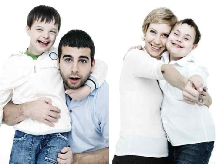 • Умственная отсталость, • Низкий рост, • Полуоткрытый рот, • Раскосые глаза
