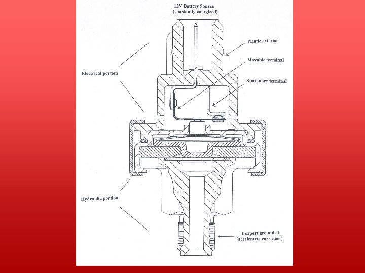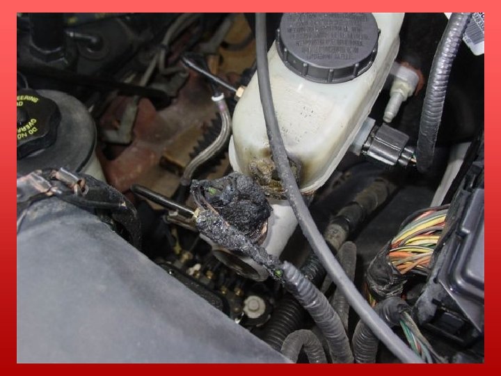 Scenario • • • Kapton seals are “set” into position Kapton seals harden and crack Brake fluid enters switch cavity Semi-conductive slurry between brass contacts Dendritic growth Amps increase Heat from increased amps Switch exterior melts Small fire spreads Other issues – Thermodynamics, positioning of the switch, climate