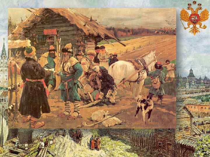 1. Внутренняя политика Бориса Годунова Семиверхая угловая башня Белого города Худ. А. Васнецов В Москве в 1584– 1591 гг. построены укрепления Белого города: 29 башен, в т. ч. 11 проездных, 9 км стен по линии современного Бульварного кольца. В 1591 г. возведен Скородом: 50 башен, Скородом в т. ч. 34 проездные, 15 км стен по линии Садового кольца.
