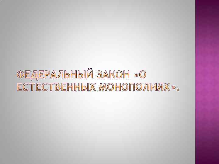 Цели настоящего Федерального закона Настоящий Федеральный закон определяет правовые основы федеральной политики в отношении естественных монополий в Российской Федерации и направлен на достижение баланса интересов потребителей и субъектов естественных монополий, обеспечивающего доступность реализуемого ими товара для потребителей и эффективное функционирование субъектов естественных монополий. Сфера применения настоящего Федерального закона Настоящий Федеральный закон распространяется на отношения, которые возникают на товарных рынках Российской Федерации и в которых участвуют субъекты естественных монополий, потребители, федеральные органы исполнительной власти, органы исполнительной власти субъектов Российской Федерации и органы местного самоуправления. Предусмотренное настоящим Федеральным законом регулирование деятельности субъектов естественных монополий не может применяться в сферах деятельности, не относящихся к естественным монополиям, за исключением случаев, установленных федеральными законами.