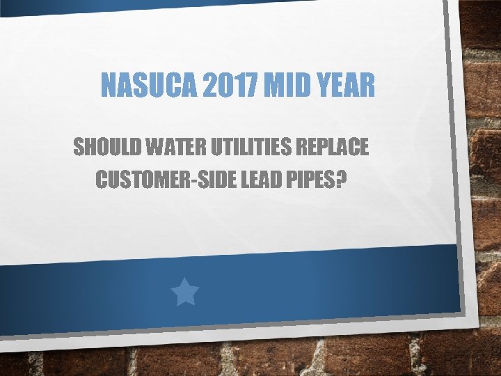 NASUCA 2017 MID YEAR SHOULD WATER UTILITIES REPLACE CUSTOMER-SIDE LEAD PIPES?