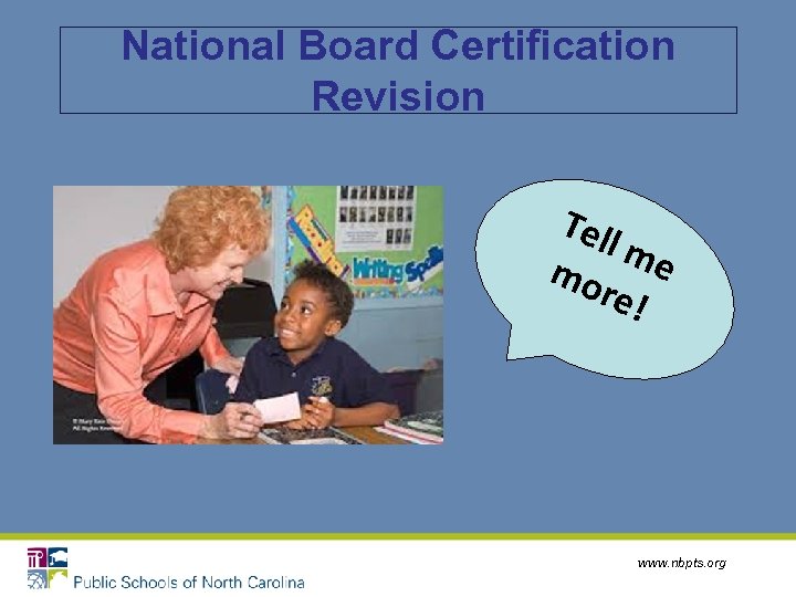 National Board Certification Revision Tel lm mo e re! www. nbpts. org